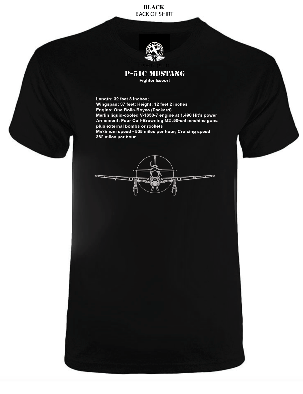A stunning silver ink shows off the P-51C Mustang with the specifications of the plane on the back!